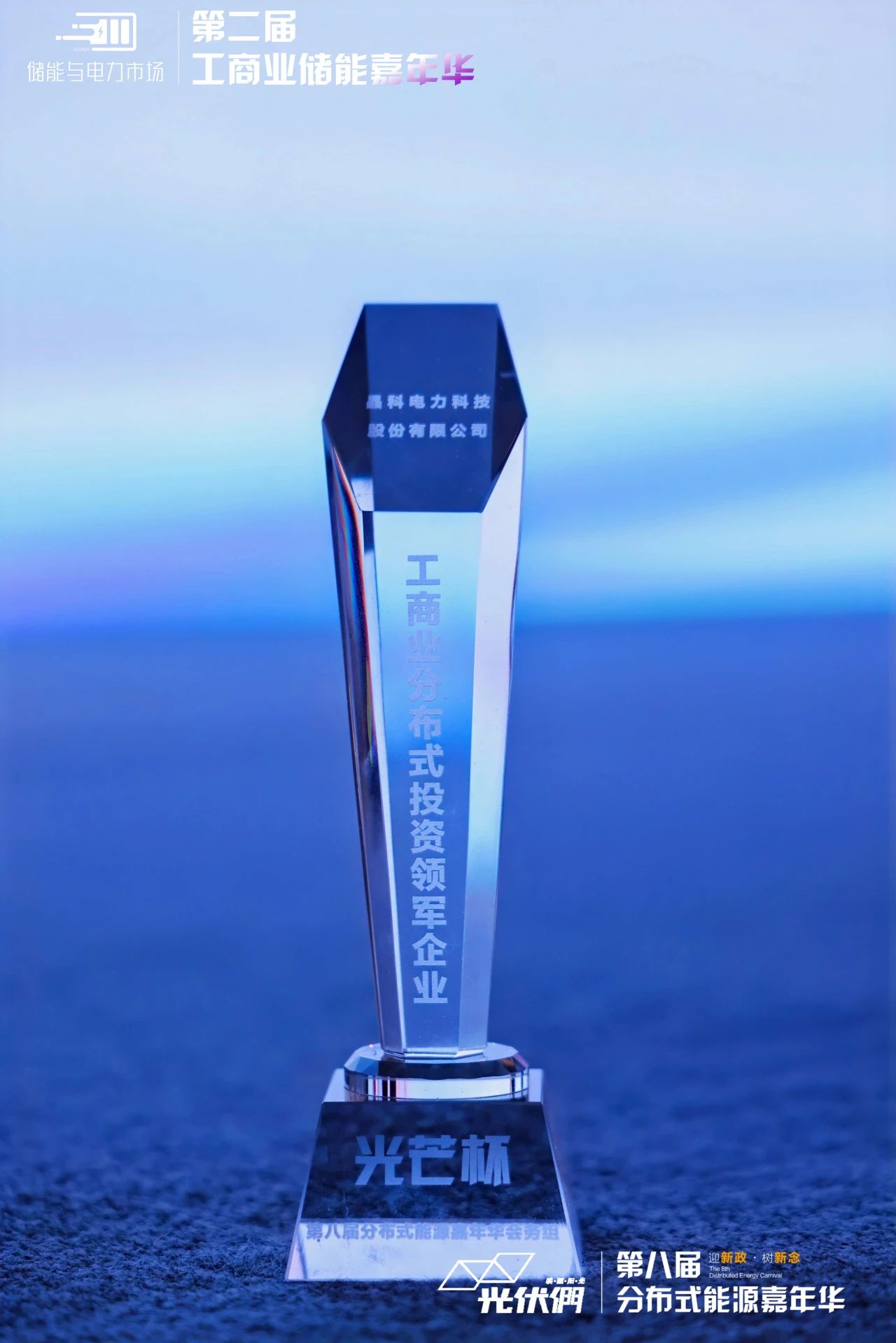 昨日,由中国光伏行业协会、光伏們、风芒能源、710公海储能与电力市场联合主办的第八届分布式能源嘉年华研讨会在浙江杭州召开。在大会“光芒杯”颁奖典礼上,710公海寰宇科技凭借在分布式光伏投资领域的卓越贡献与市场影响力,荣获主办方颁发的“工商业分布式投资领军企业”奖。